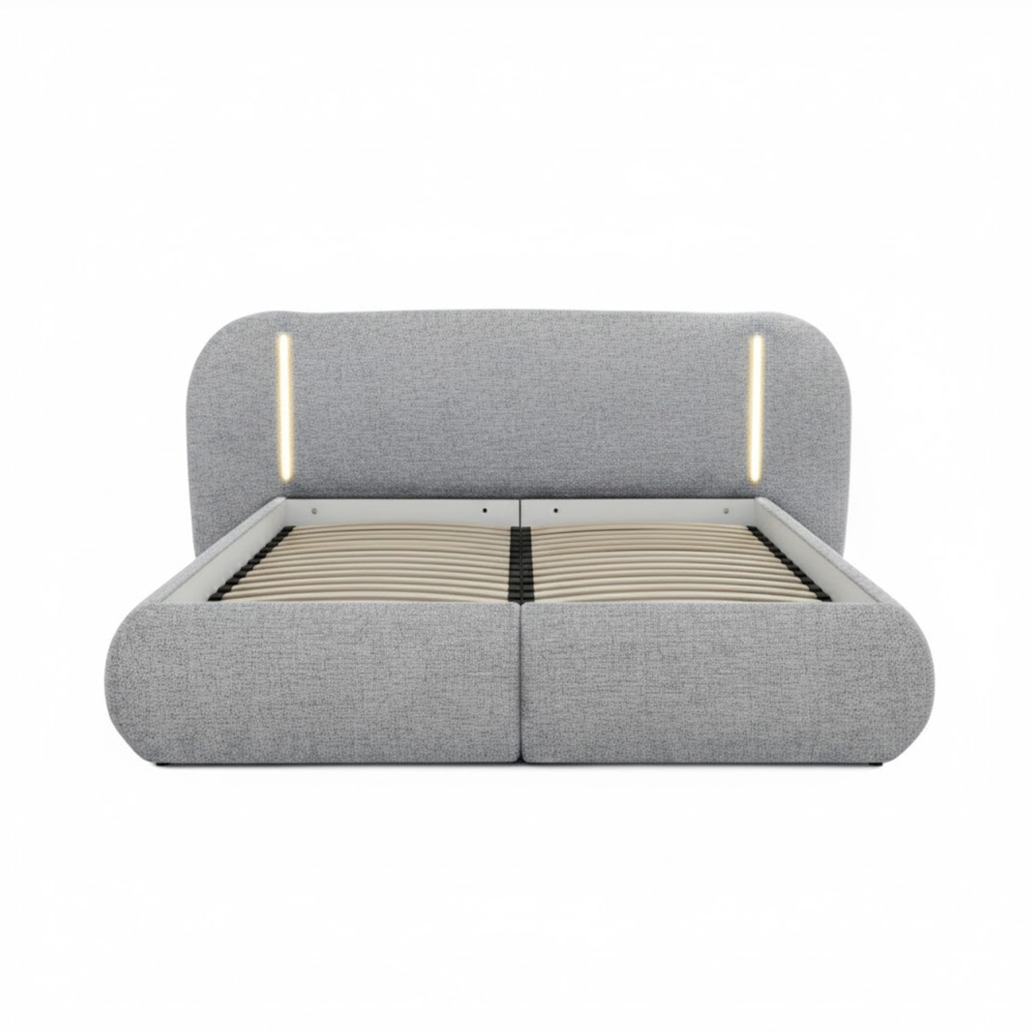 Patul tapitat 160 x 200 cm, cu iluminare, gri deschis Coco este dotat cu un sistem modern de iluminare cu bandă LED integrat în tăblie, oferind lumină ambientală perfectă pentru serile de lectură, momentele de relaxare sau pentru a crea o atmosferă intimă, fără a folosi surse de lumină puternice. LED-ul este eficient energetic și completează perfect designul contemporan al patului.