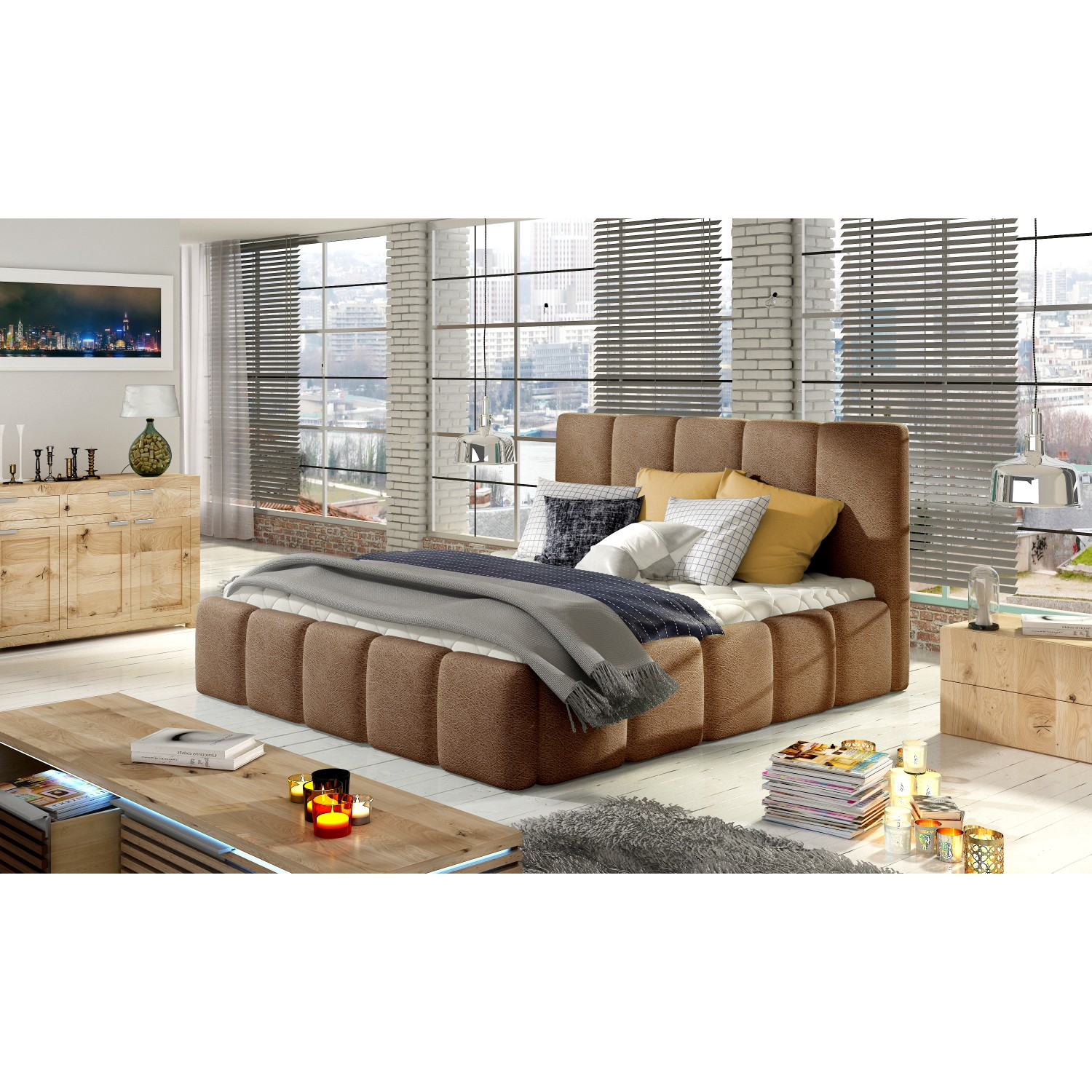 Patul tapițat cu somieră rabatabilă 160 x 200 cm maro deschis Erica o alegere bună pentru un dormitor elegant, datorită stilul său extrem de rafinat. Designul modern, care adaugă rafinament, face din patul Erica cel mai popular model al nostru pentru cei care caută dormitoare elegante și confortabile. Stilul este pur și simplu încântător, cu tăblia înaltă și panourile laterale ale cadrului căptușite cu spumă de tapițerie, fiecare împărțit în secțiuni prin cusături verticale cu accente orizontale de tufting tipice designului eclectic și elegant. Textilul de calitate care acoperă patul (Dora 26) este confortabil, razistent la uzură și își păstrează frumusețea timp îndelungat.