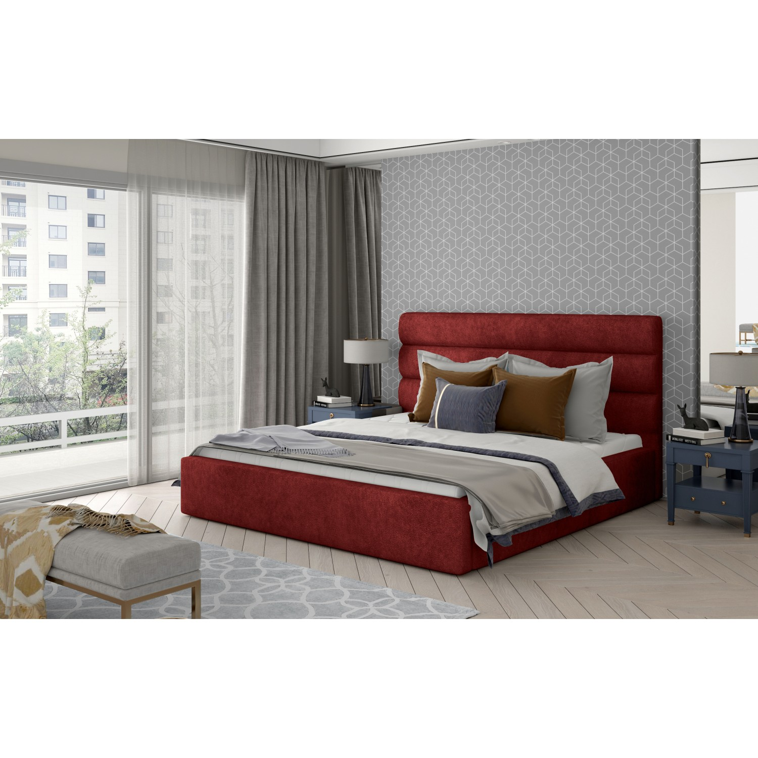 Disponibil într-o gamă variată de culori, patul tapițat cu somieră rabatabilă 160 x 200 cm roșu Camel se integrează armonios atât în dormitoarele moderne, cât și în cele clasice.
