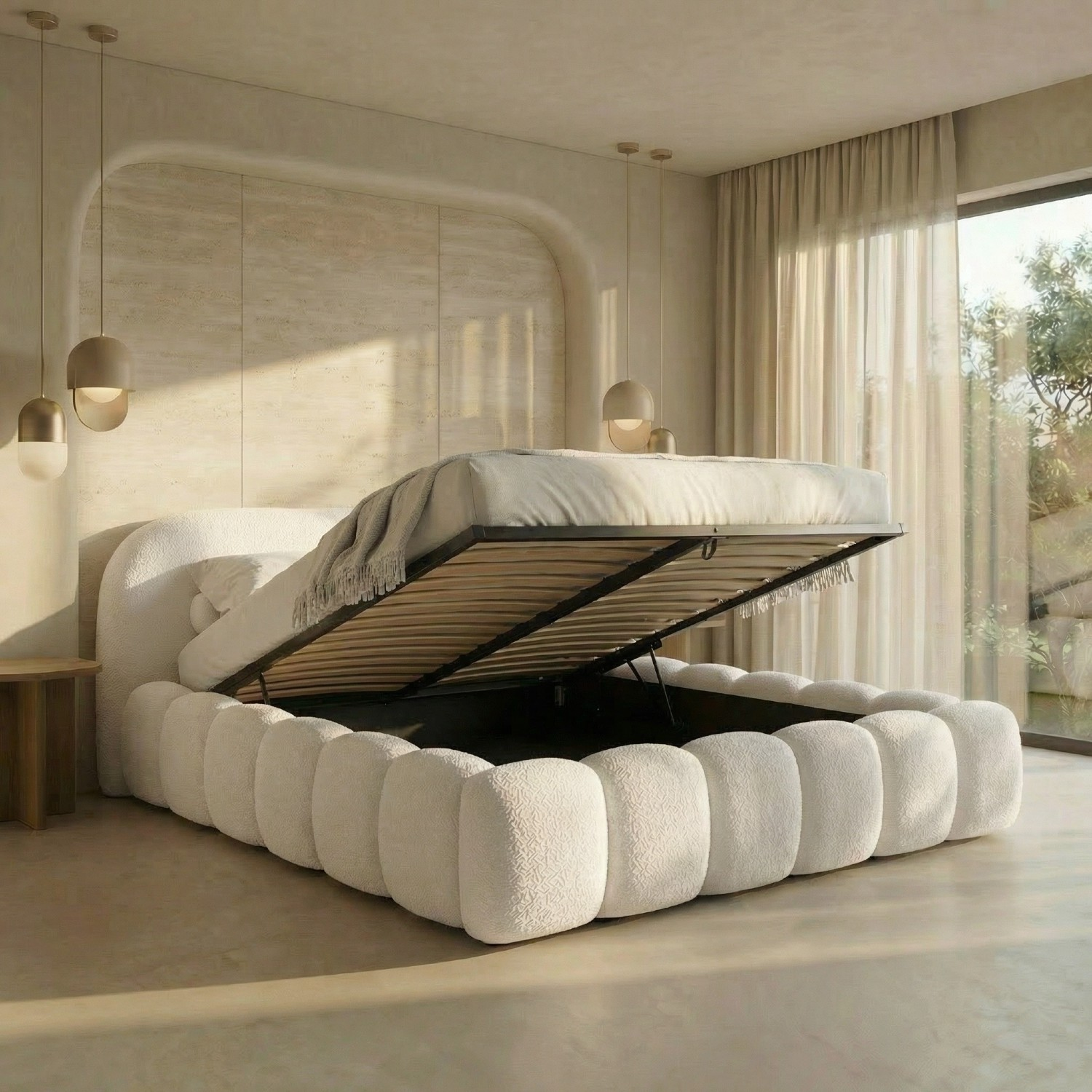 ✔️ Tapițerie bouclé moale, plăcută și ușor de asortat