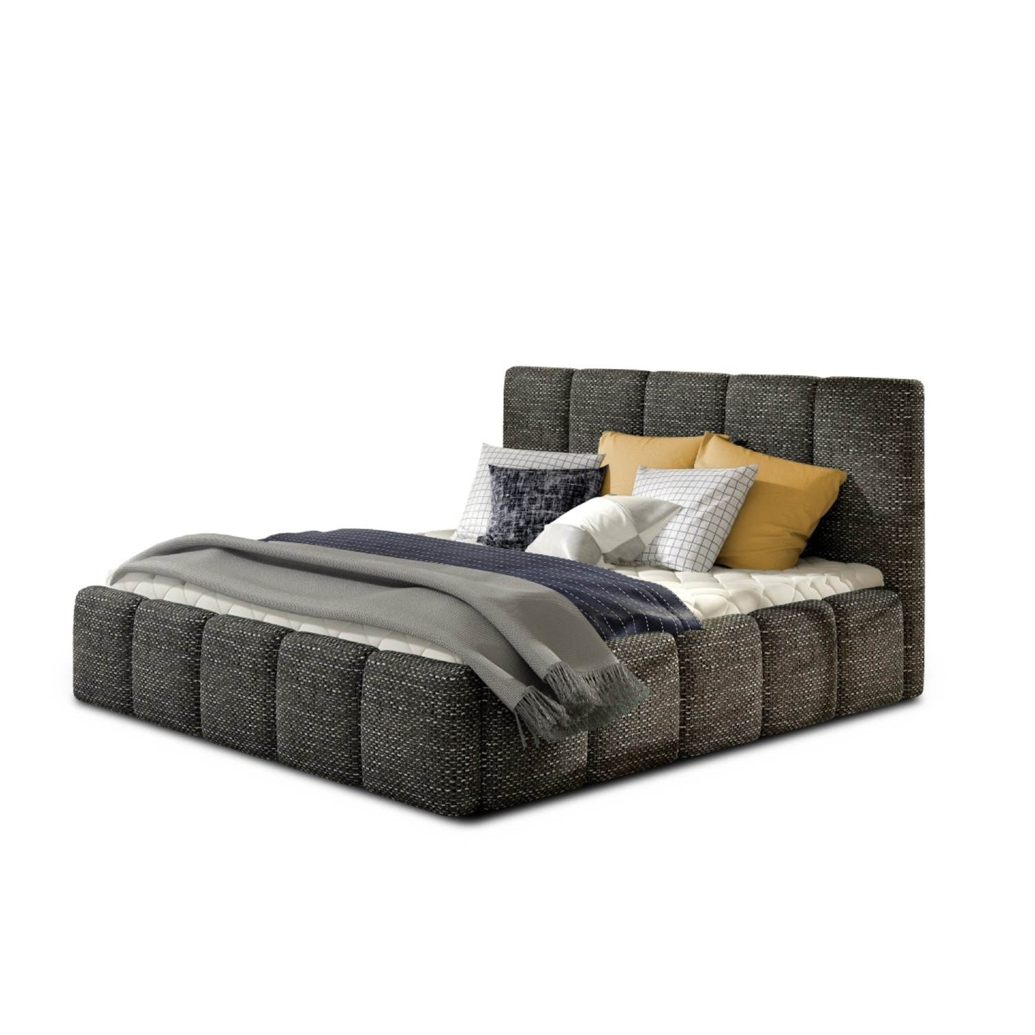 Patul tapițat cu somieră rabatabilă 180 x 200 cm negru Erica o alegere bună pentru un dormitor elegant, datorită stilul său extrem de rafinat. Designul modern, care adaugă rafinament, face din patul Erica cel mai popular model al nostru pentru cei care caută dormitoare elegante și confortabile. Stilul este pur și simplu încântător, cu tăblia înaltă și panourile laterale ale cadrului căptușite cu spumă de tapițerie, fiecare împărțit în secțiuni prin cusături verticale cu accente orizontale de tufting tipice designului eclectic și elegant. Textilul de calitate care acoperă patul (Berlin 02) este confortabil, rezistent la uzură și își păstrează frumusețea timp îndelungat.
