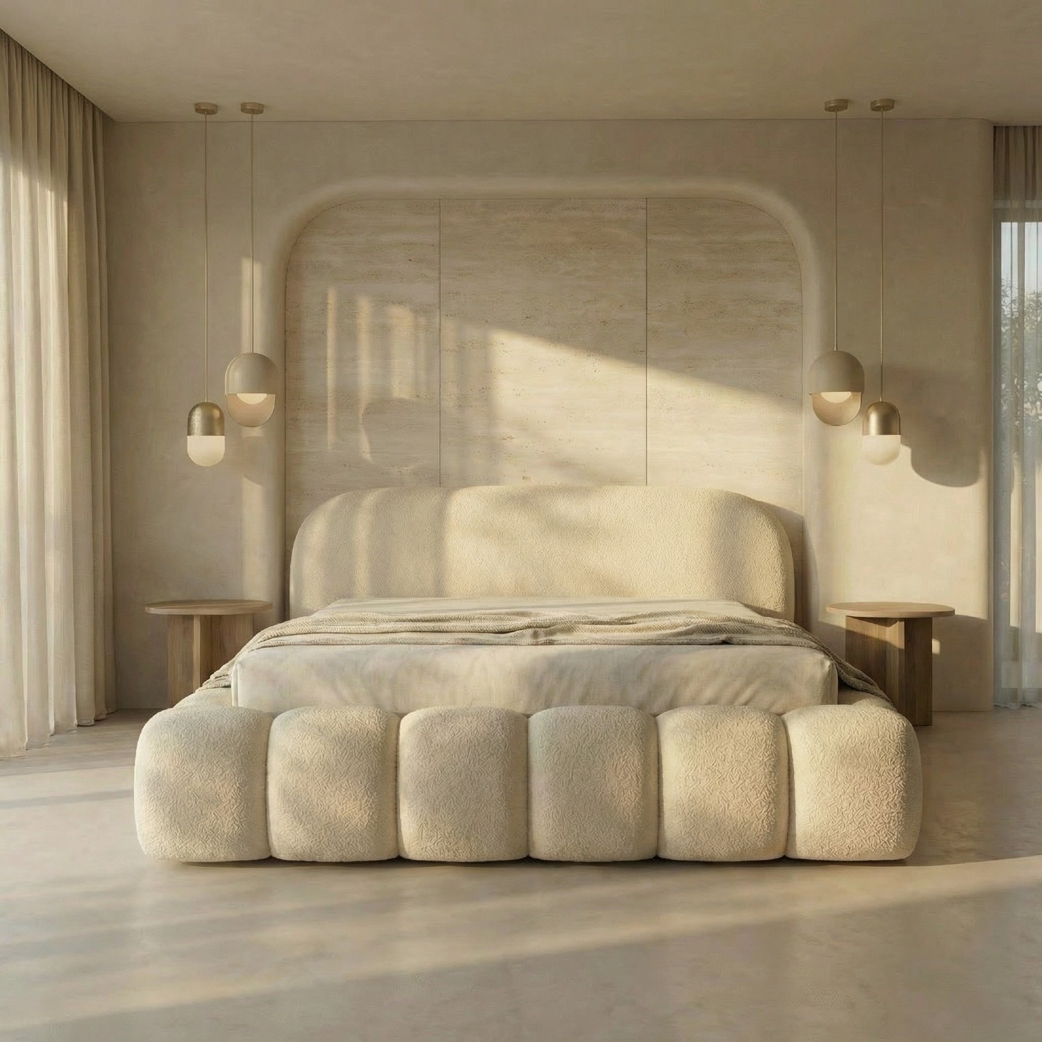 ✔️ Tapițerie bouclé moale, plăcută și ușor de asortat
