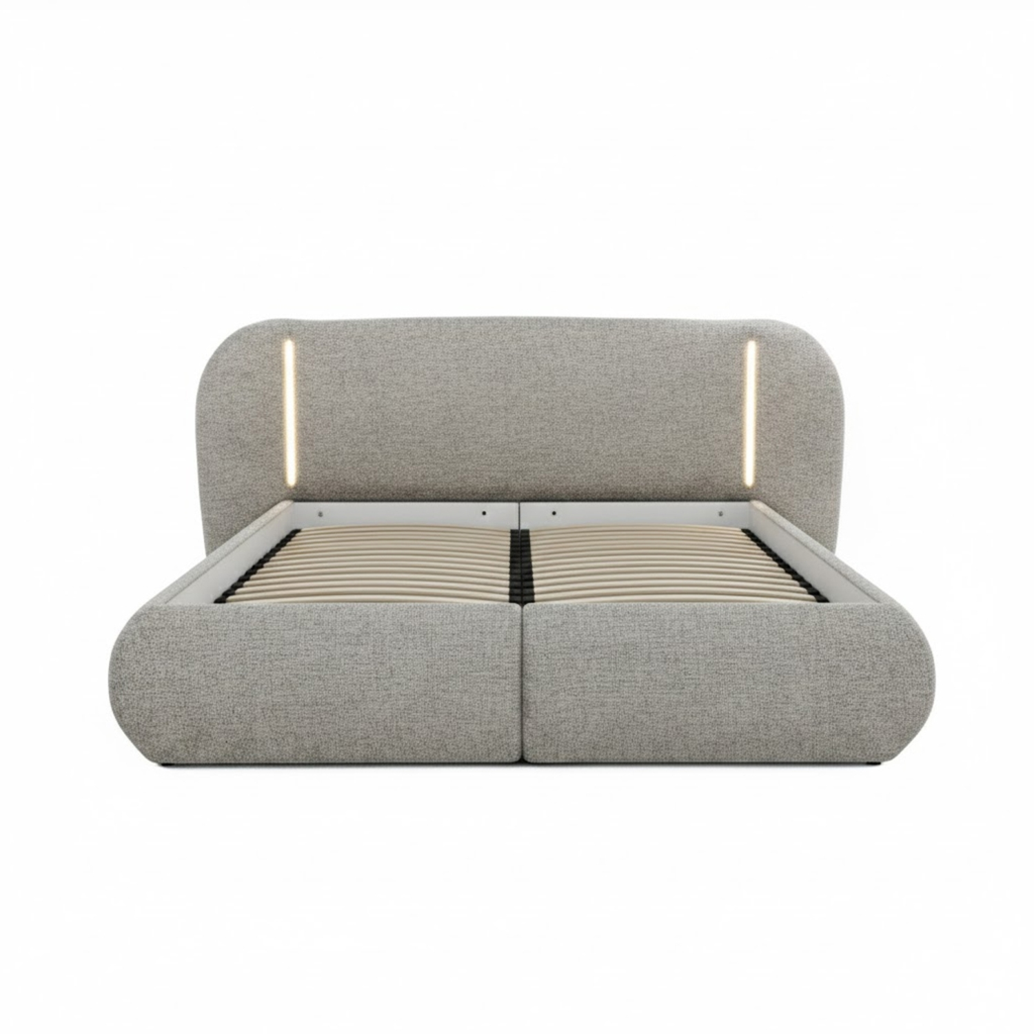 Patul tapitat 160 x 200 cm, cu iluminare, bej Coco este un mobilier premium, creat pentru a oferi dormitorului tău un aer modern, elegant și extrem de confortabil. Designul său se remarcă prin tăblia impunătoare, realizată cu forme rotunjite și proporții generoase, care adaugă un plus de rafinament și creează un punct vizual central în încăpere. Tapiteria chenille, un tip de catifea structurată, într-o nuanță caldă de bej (Bella 60) conferă o atmosferă relaxantă, fiind ușor de integrat în diverse stiluri de amenajare – de la contemporan și minimalist, până la modern-luxury.