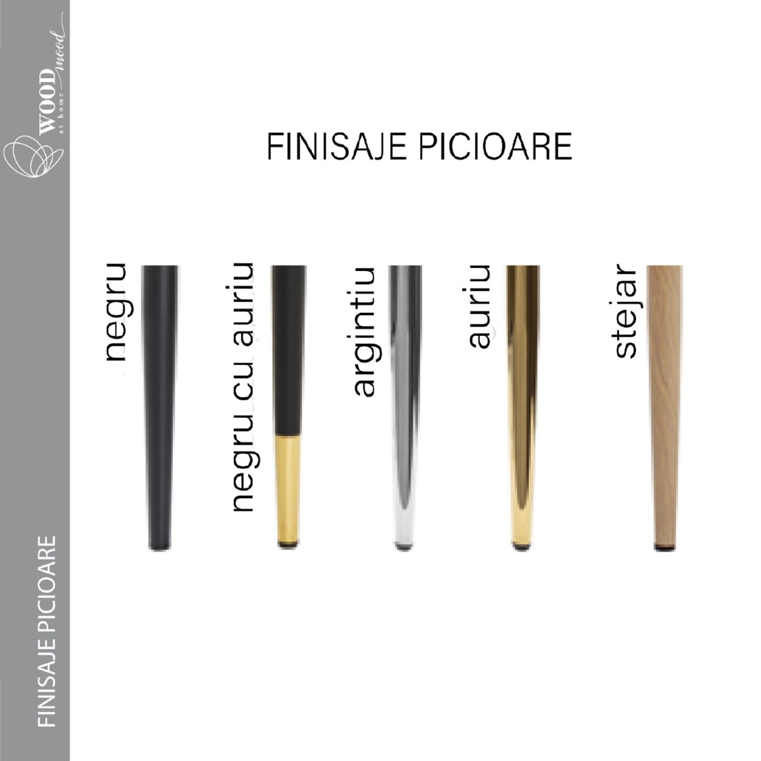 Șezutul este construit pe o structură solidă din lemn, iar picioarele metalice îi oferă stabilitate și durabilitate. Detaliul cu fermoar exterior la spătar facilitează procesul de întreținere și retapițare, adăugând un plus de funcționalitate designului elegant.