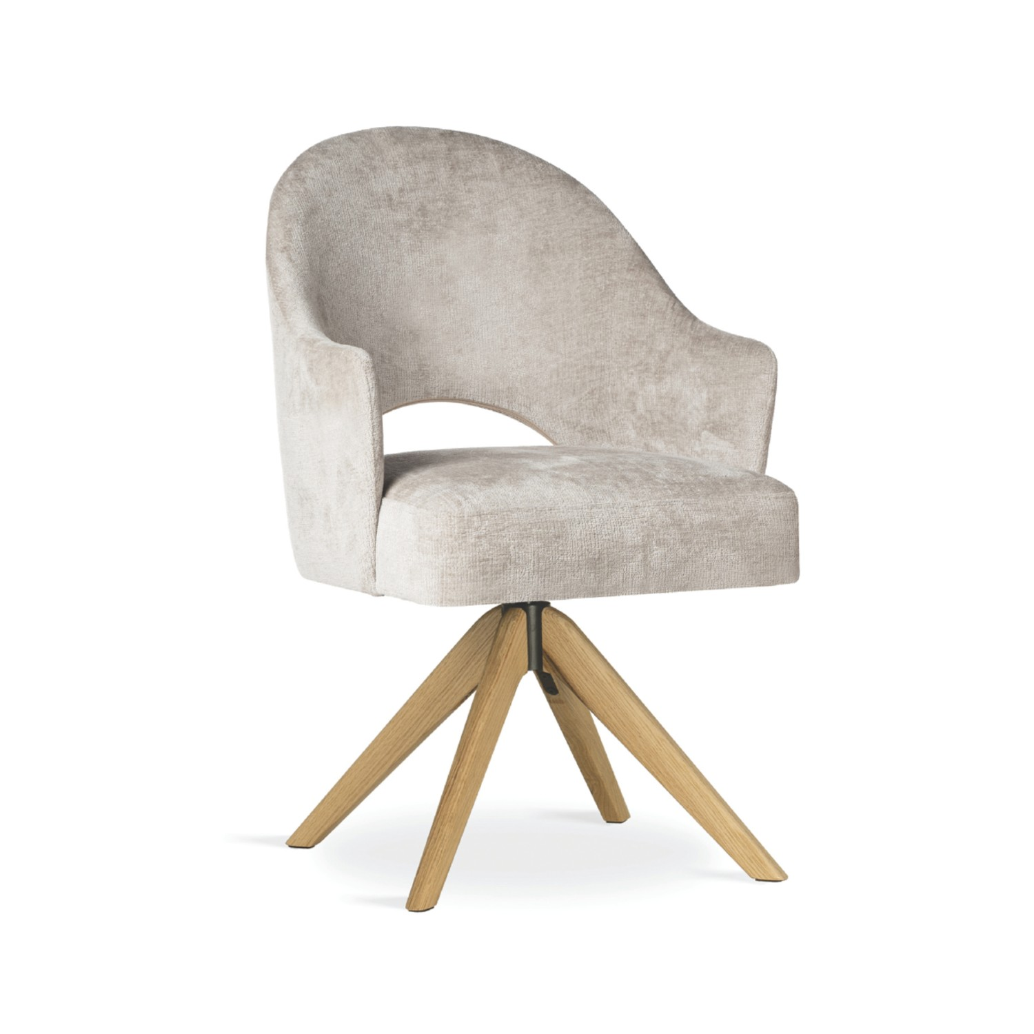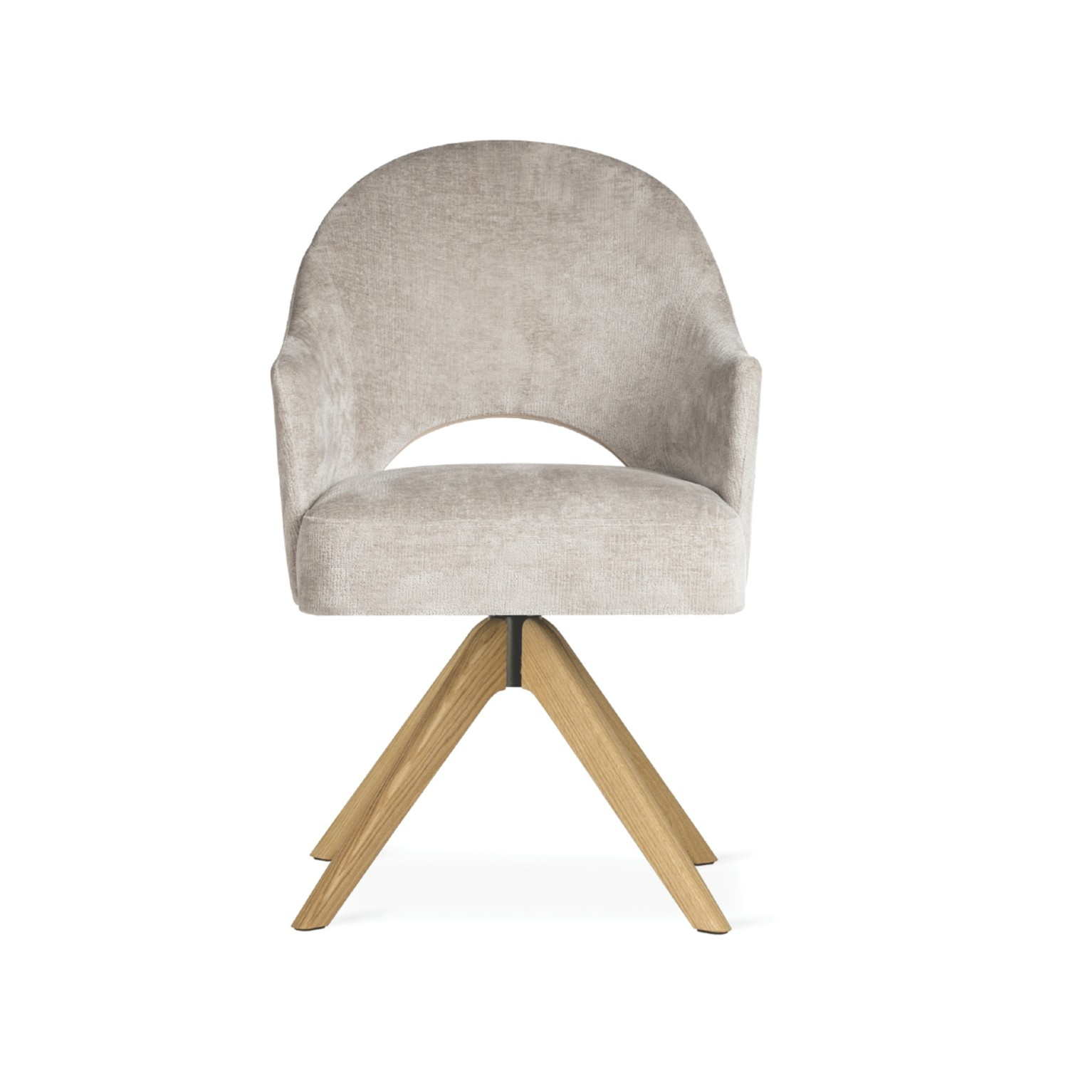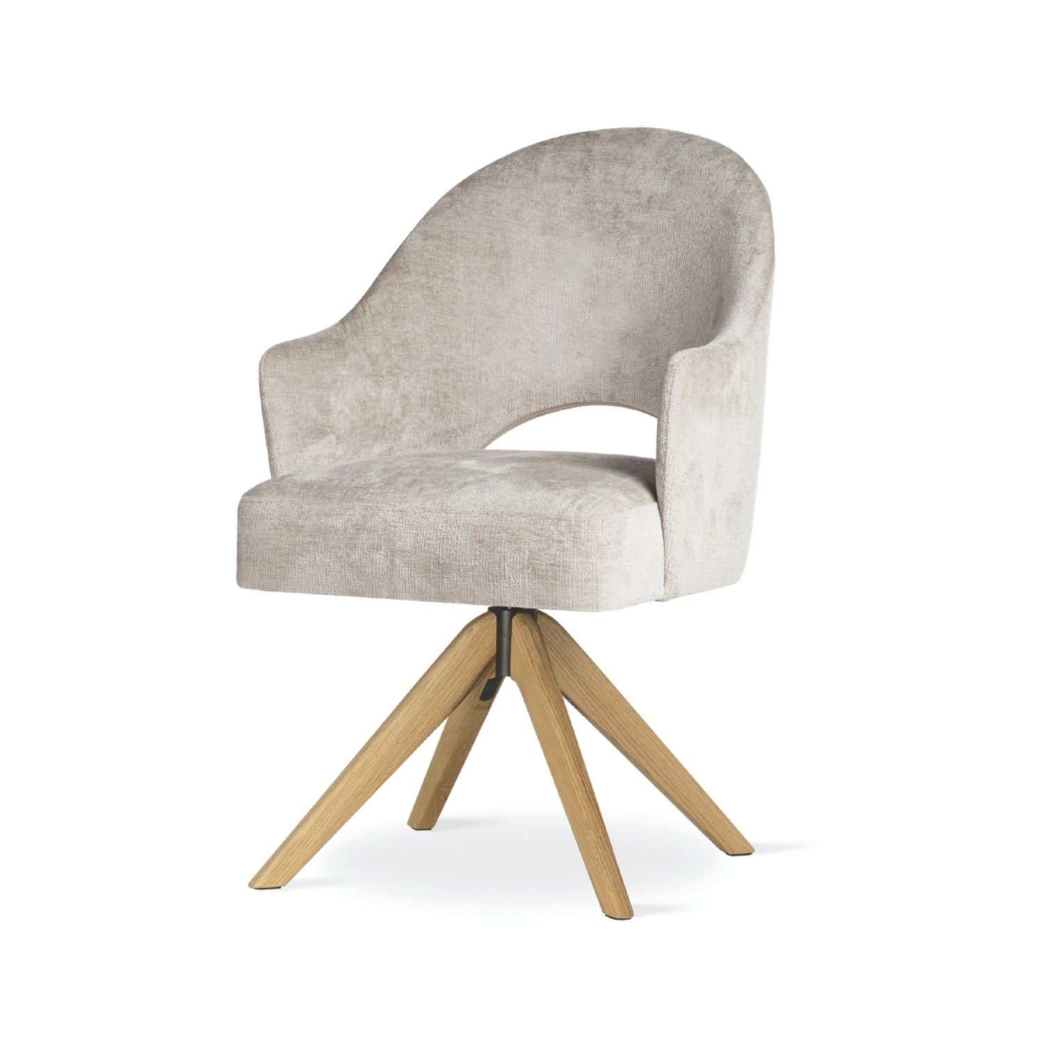 Baza rotativă adaugă un plus de dinamică și practicitate, transformând scaunul într-o piesă de mobilier versatilă și funcțională. Tapițeria este realizată dintr-un material premium (Perfect Harmony 04) ce oferă un aspect luxos și o textură plăcută la atingere.