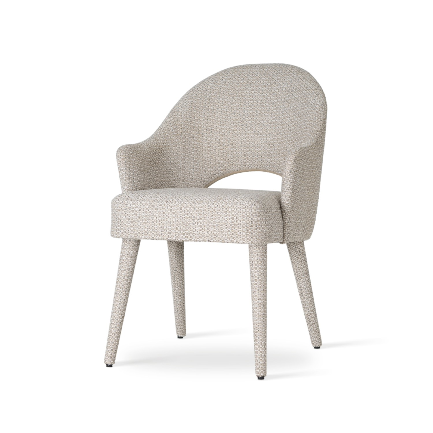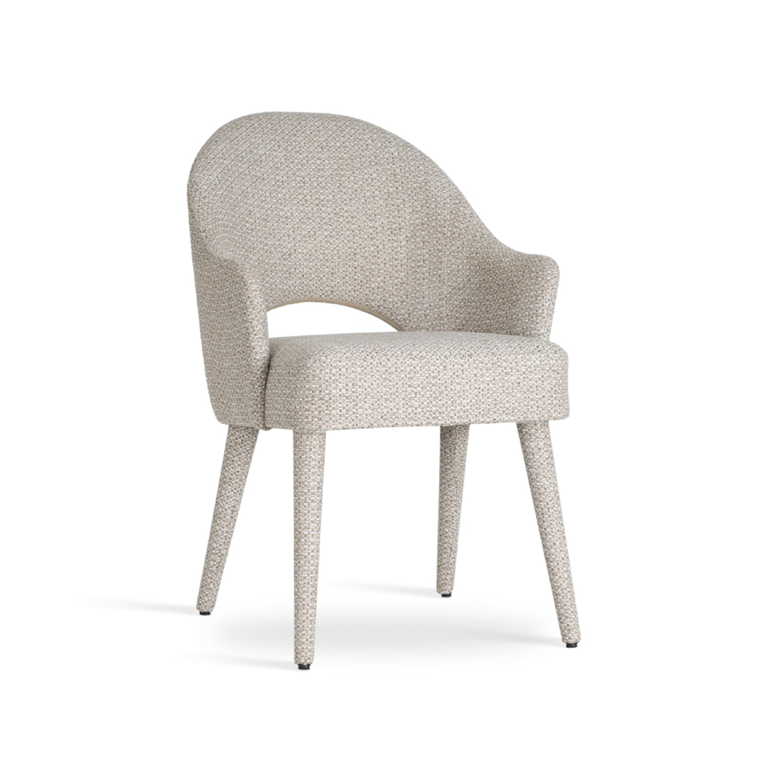 ✔️ Picioare din lemn masiv de fag, spătar decupat, cotiere