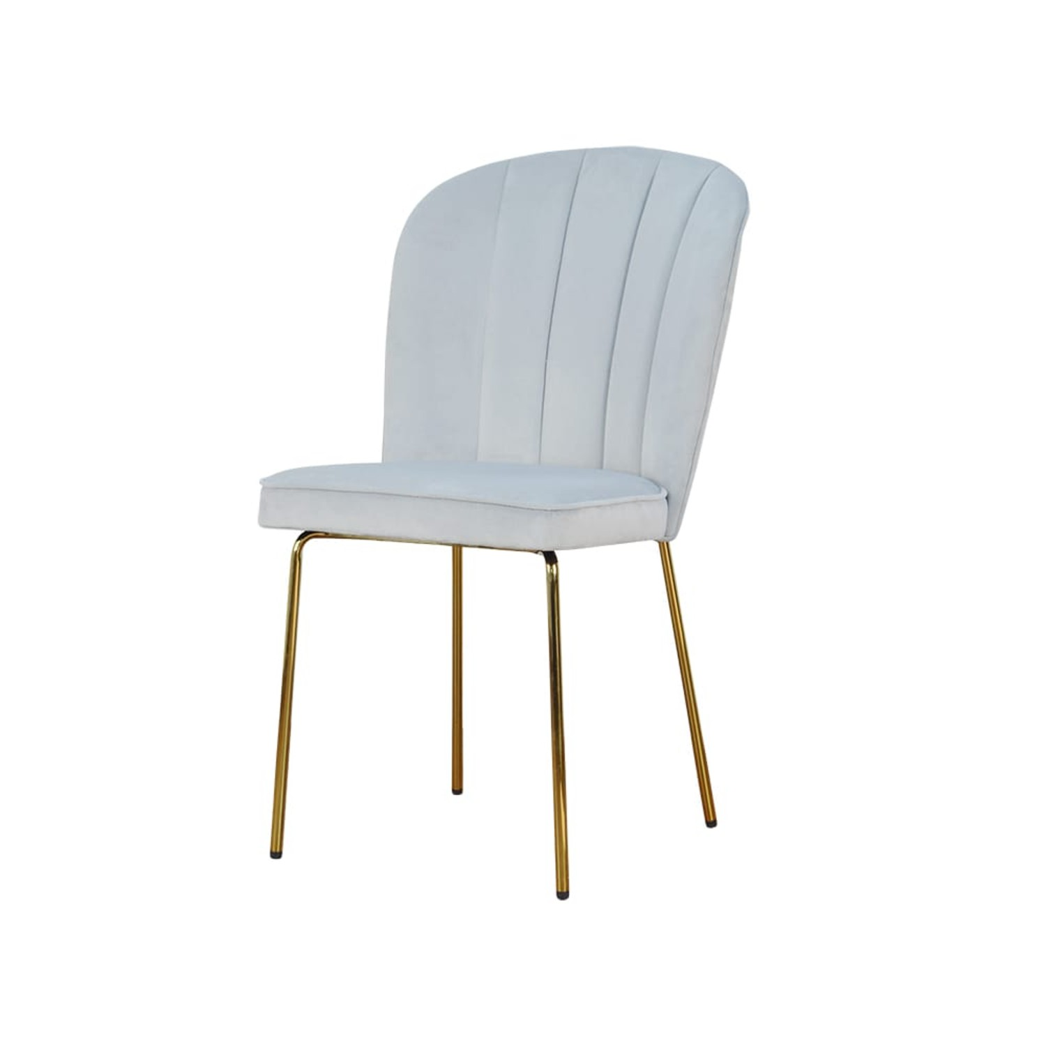 Picioarele din metal auriu oferă stabilitate și un accent glam, transformând scaunul într-un element statement în orice decor contemporan. Spătarul profilat ergonomic asigură susținere optimă pentru spate, contribuind la o experiență confortabilă chiar și în utilizare îndelungată.