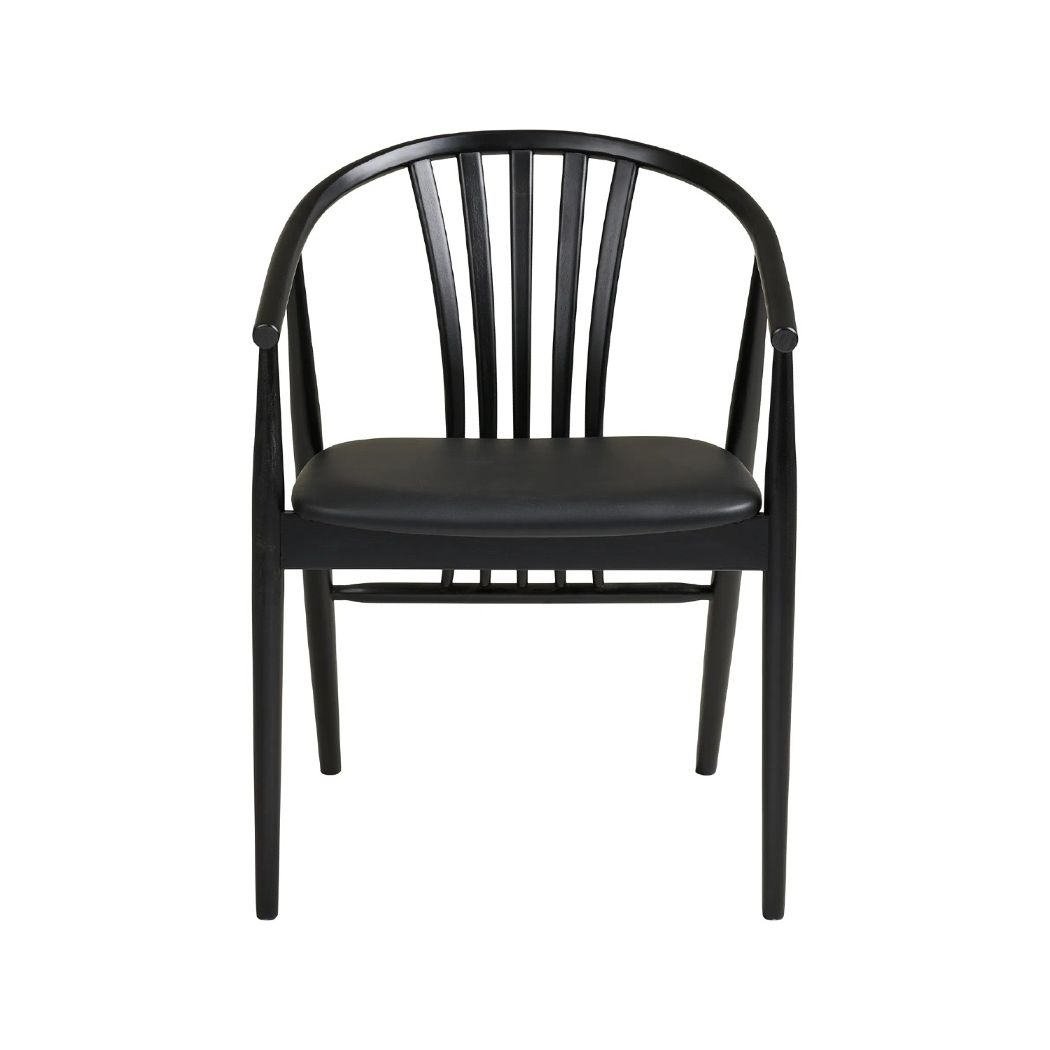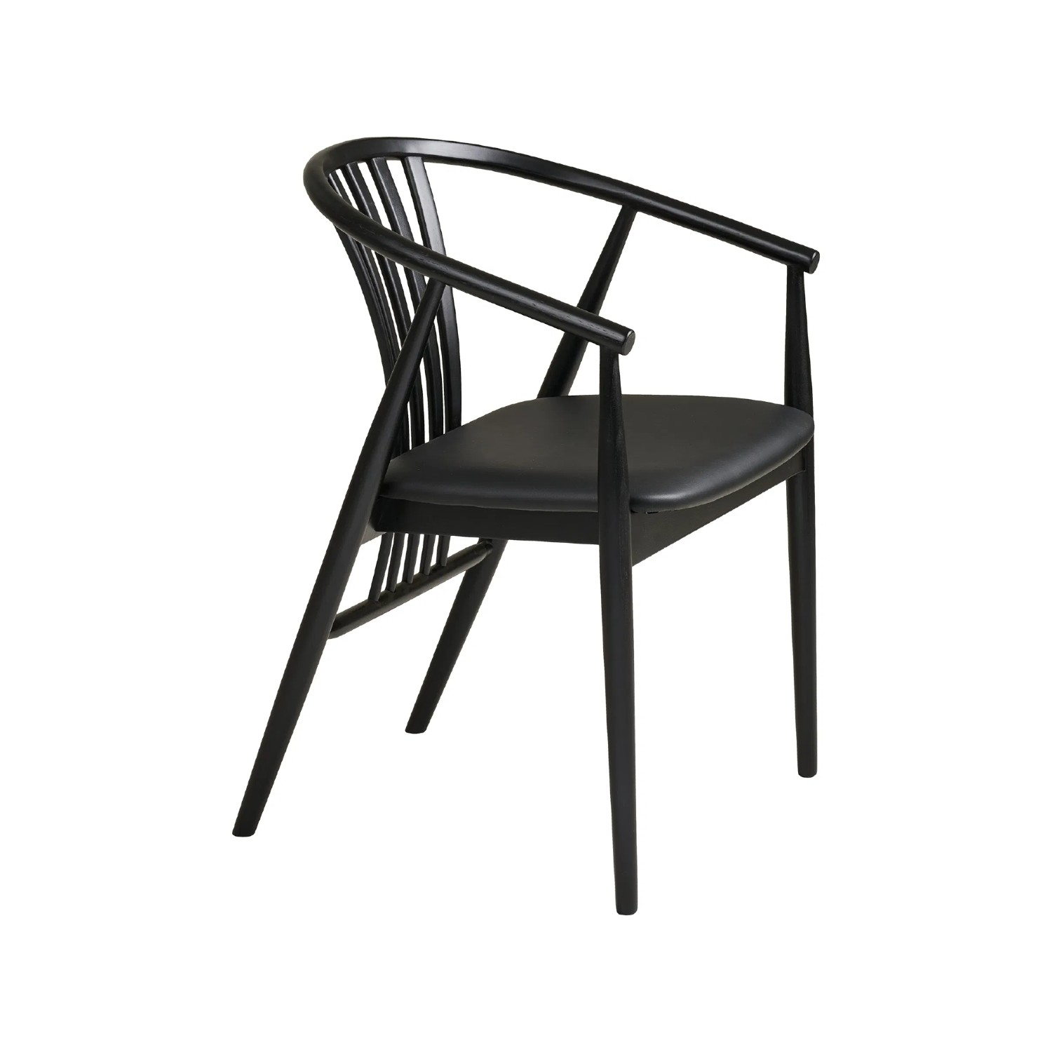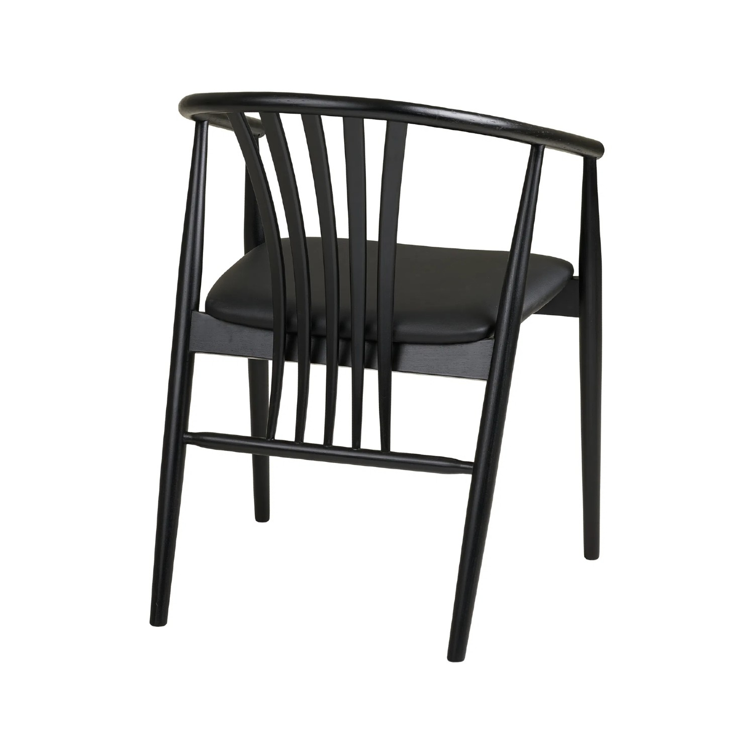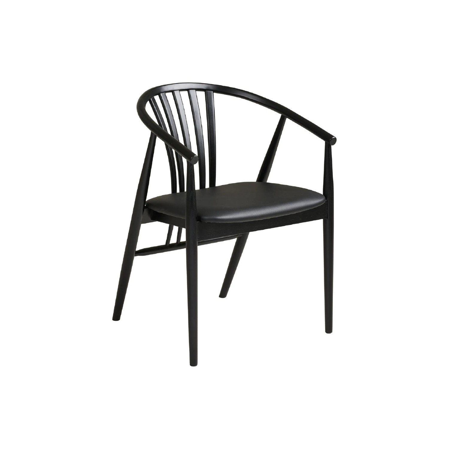 Designul scaunului din lemn cu brațe negru Augustin se remarcă prin linii curbate fluide și un spătar ergonomic care adaugă atât suport excelent, cât și un detaliu estetic rafinat. Picioarele subțiri, atent finisate, contribuie la aspectul minimalist, potrivit pentru interioare nordice, moderne sau contemporane.