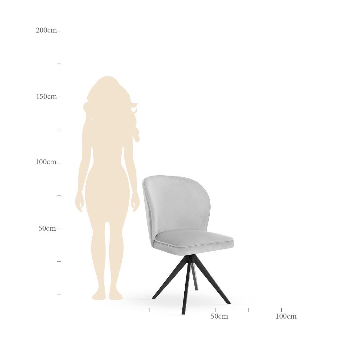 Dimensiuni:Latime: 54 cmAdancime totala: 60 cmAdancime sezut: 48 cmInaltime totala: 87 cmInaltime sezut: 46 cmGreutate produs: 7,9 kgSarcina maxima suportata: 100 kgNumar colete: 1Material: scaun realizat pe structura din lemn, cu tapiterie textila din catifea si picioare metalice vopsite negru Culoare: gri deschis