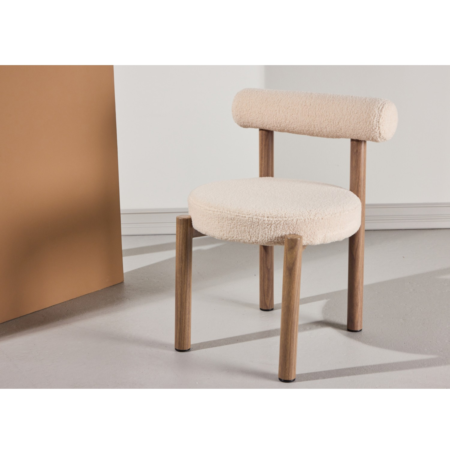✔️ Șezut moale, tapițat cu țesătură bouclé albă, confortabilă și elegantă