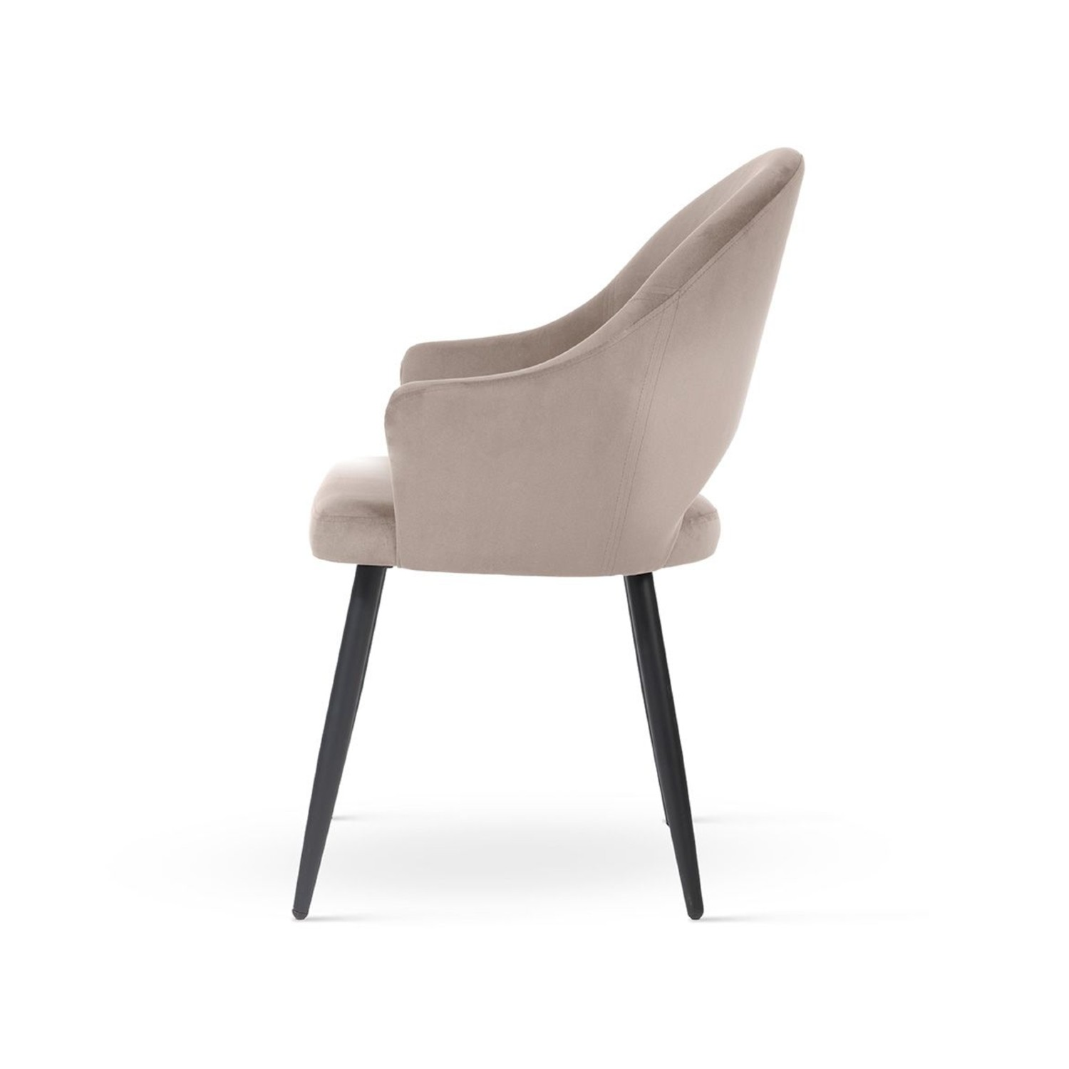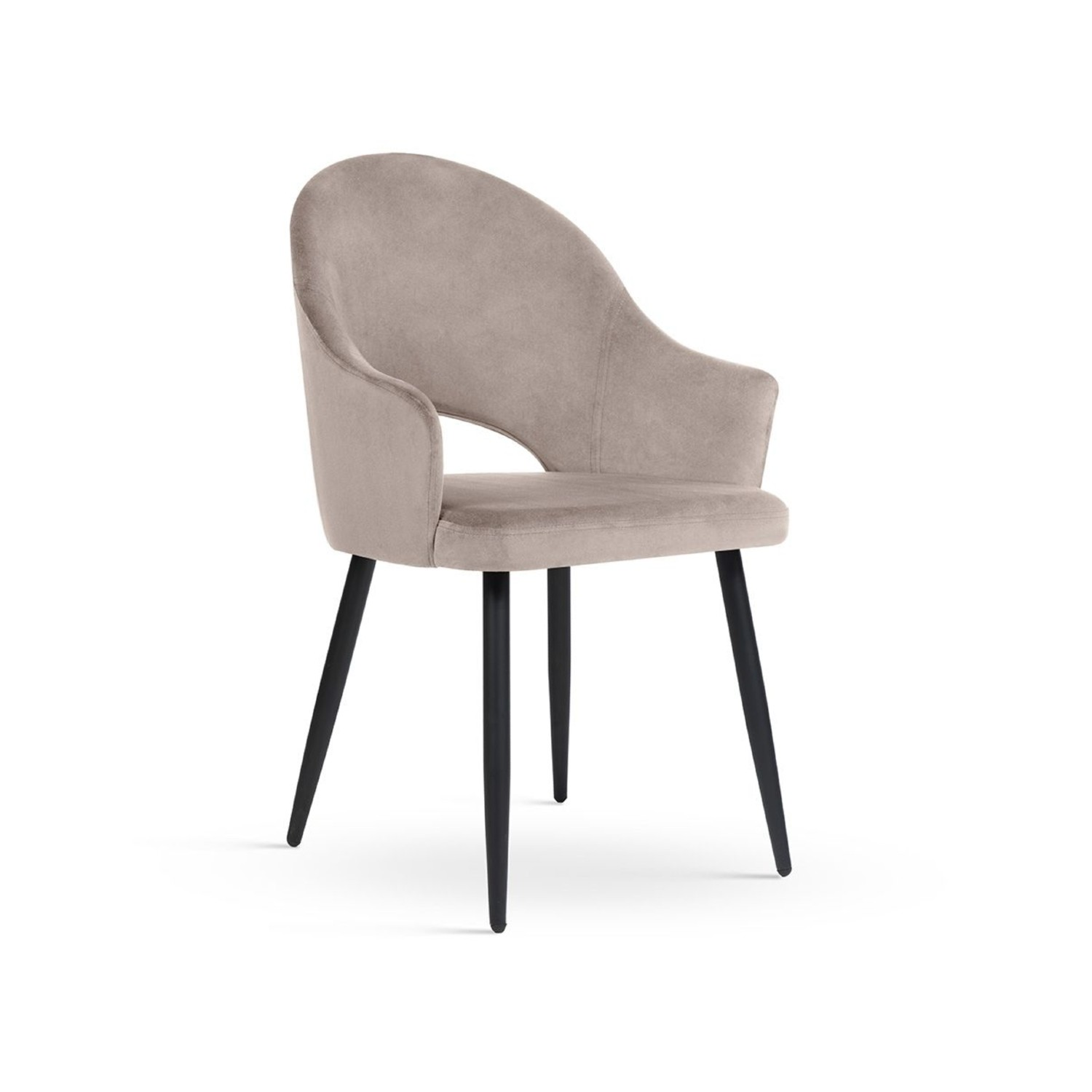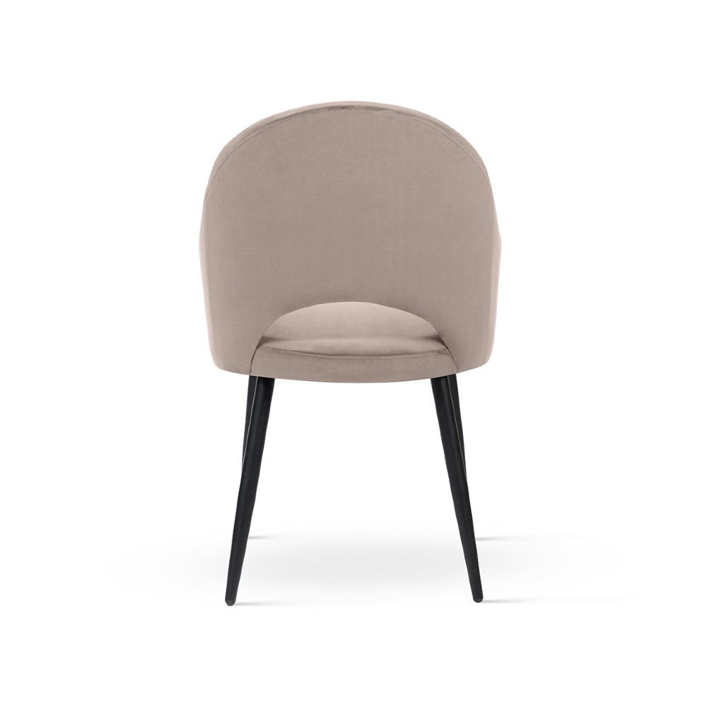 Șezutul este prevăzut cu umplutură din spumă confortabilă, asigurând susținere optimă și confort sporit. Combinația cromatică bej închis/negru, împreună cu picioarele metalice negre, facilitează integrarea acestui scaun tapitat modern în amenajări contemporane, minimaliste sau industriale. Textilul velour (Salvador 03) care acoperă scaunul este un textil de calitate, cu proprietăți care îl recomandă pentru utilizare îndelungată.