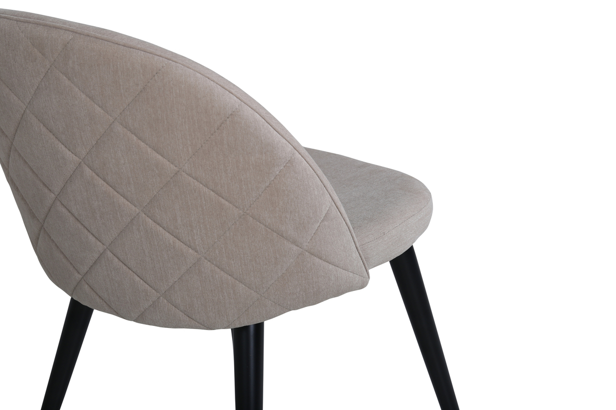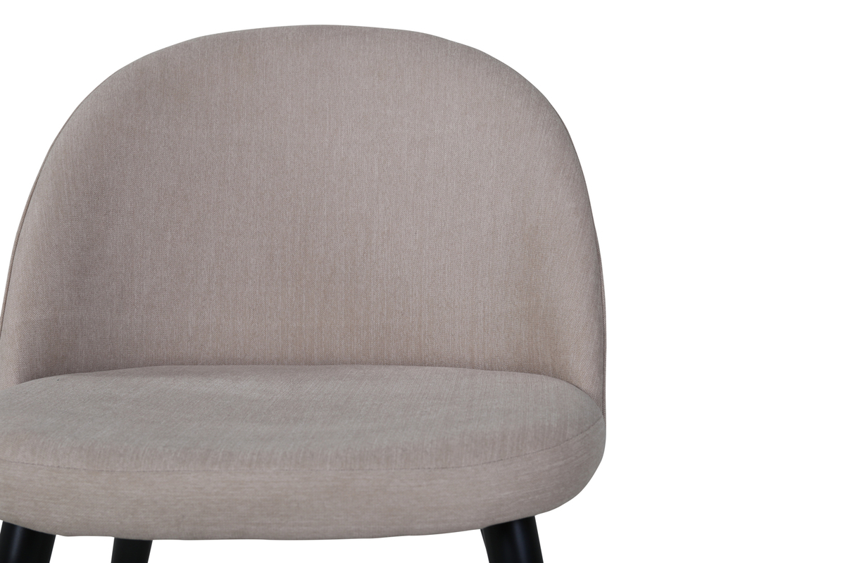 Picioarele sunt ușor evazate, realizate din metal negru, oferind o impresie de robustețe. Spătarul este, la rândul său, tapițat și umplut cu burete, pentru un confort sigur. Tapițeria din catifea îi adaugă eleganță, fiind un material aspectuos și plăcut la atingere. Picioarele realizate din oțel asigură o bază solidă, care rezistă în timp. Combinația dintre culoarea bej închis a tapițeriei și finisajul negru al picioarelor face din scaunul de dining tapițat bej închis/negru Velvet o opțiune ideală pentru înfrumusețarea unor mese moderne.