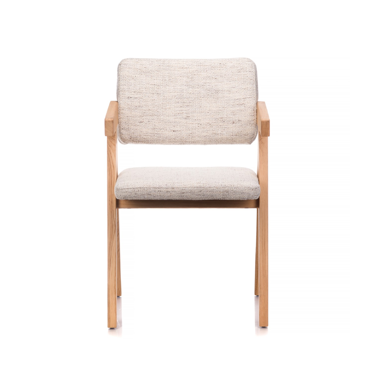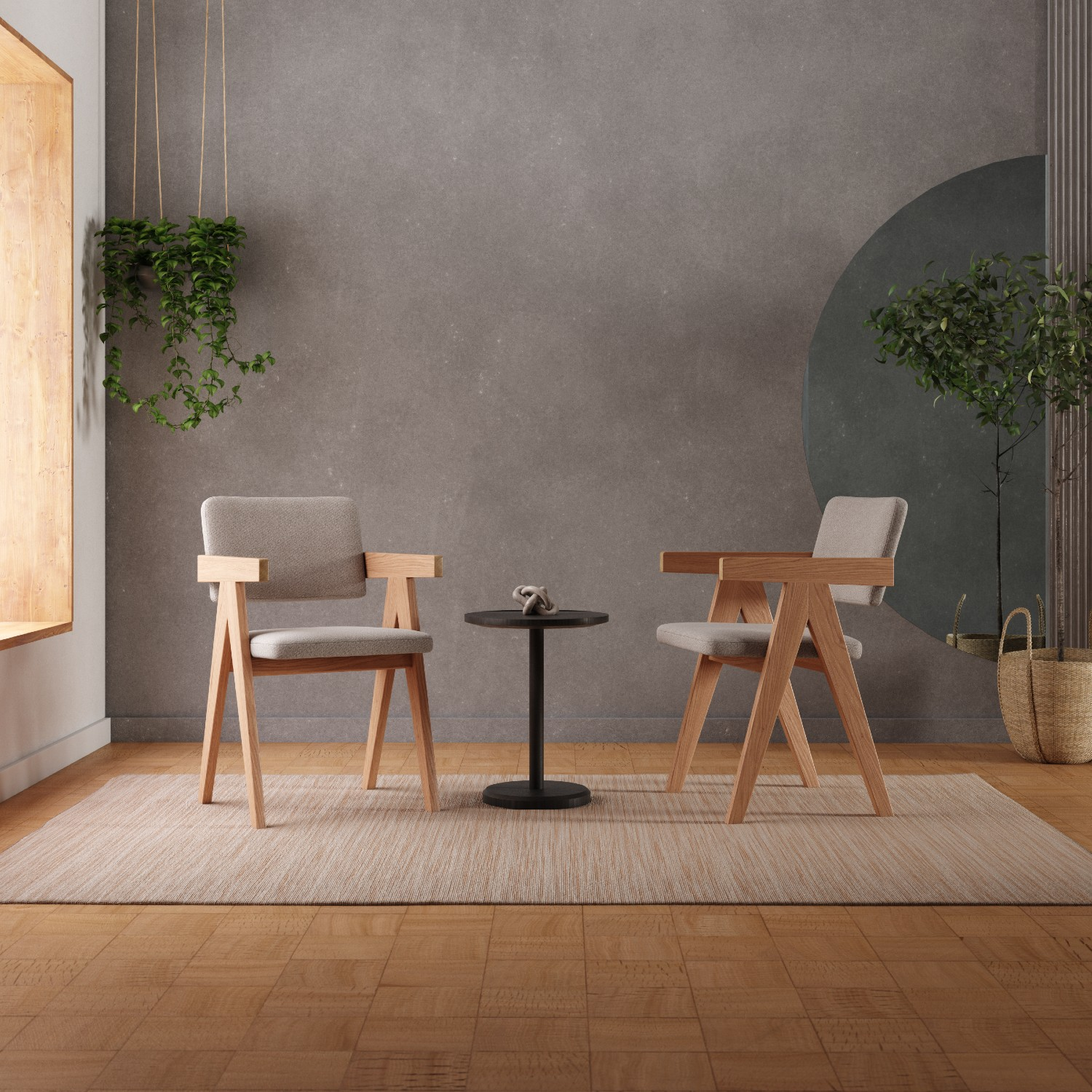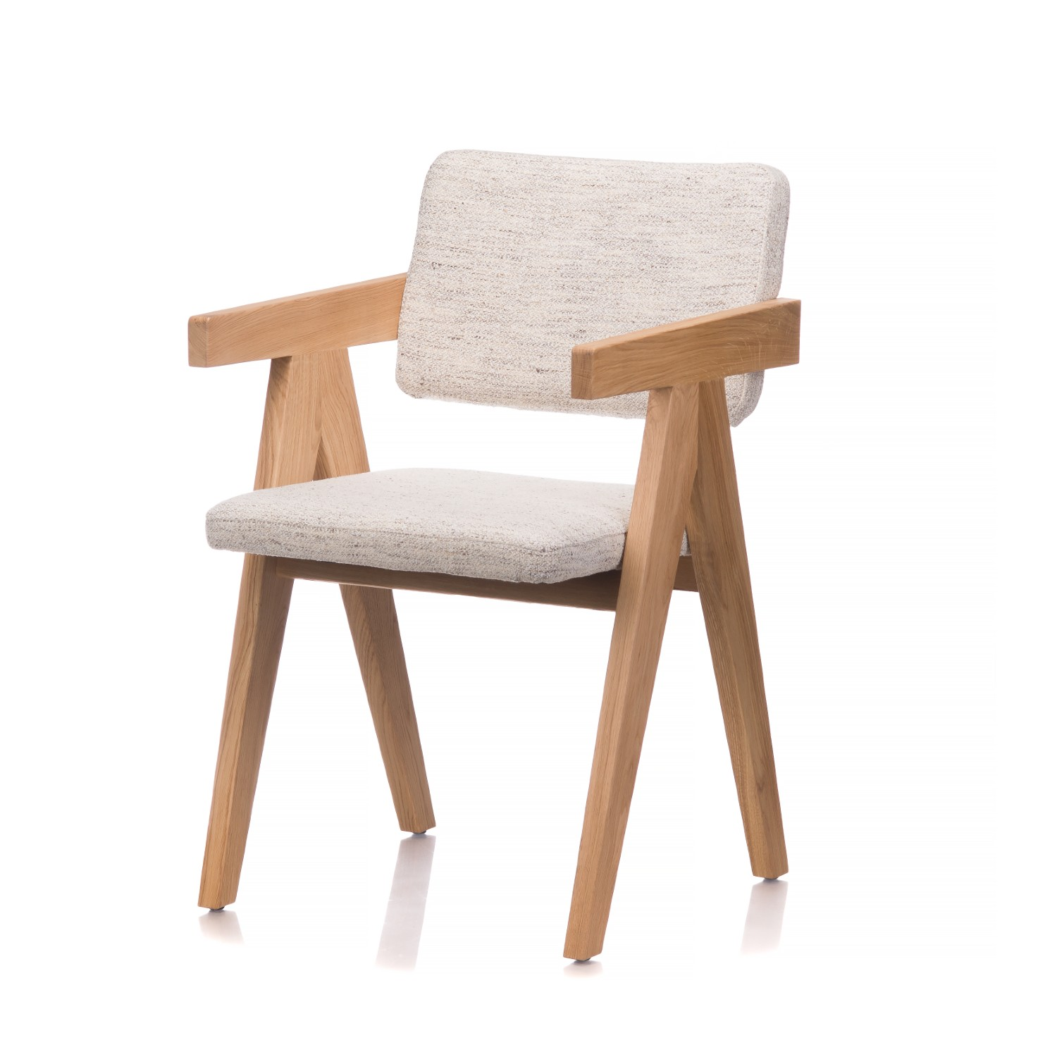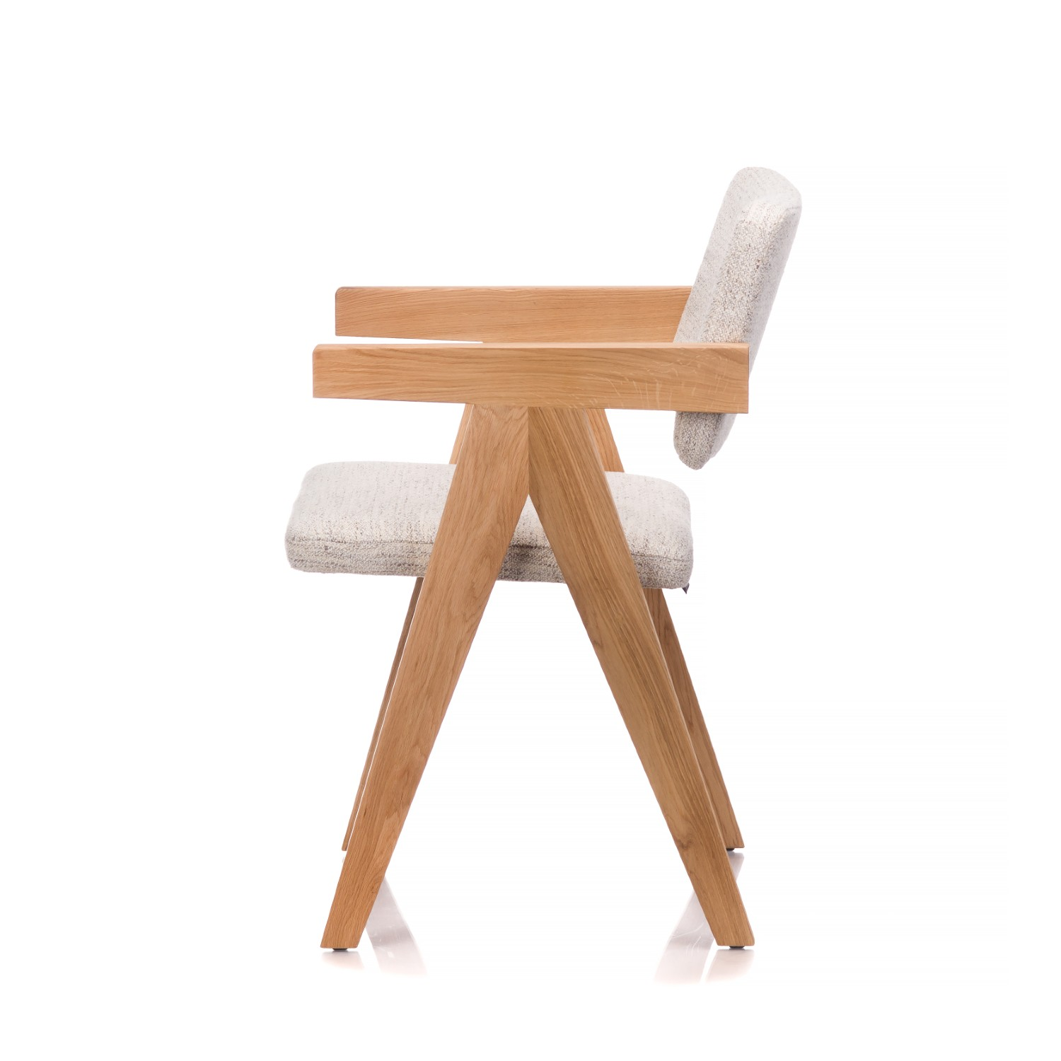 Scaunul dining tapițat cu brațe bej/stejar natur Teramo este realizat dintr-o combinație de lemn și material textil. Structura picioarelor și brațelor este din lemn masiv, cu un design geometric care oferă stabilitate și un aspect contemporan. Șezutul și spătarul tapițate cu material textil de culoare bej, oferă confort și un aspect elegant. Scaunul tapițat cu brațe bej/stejar natur Teramo are un stil minimalist și modern, cu linii simple, dar cu un detaliu interesant – brațele și picioarele formează o structură în unghi, ceea ce îi conferă un aer sofisticat. Acest obiect de mobilier este potrivit pentru living, dining, birou sau spații comerciale (restaurante, cafenele). Scaunul tapițat cu brațe bej/stejar natur Teramo este un scaun ce îmbină funcționalitatea cu estetica modernă, fiind atât confortabil, cât și decorativ.