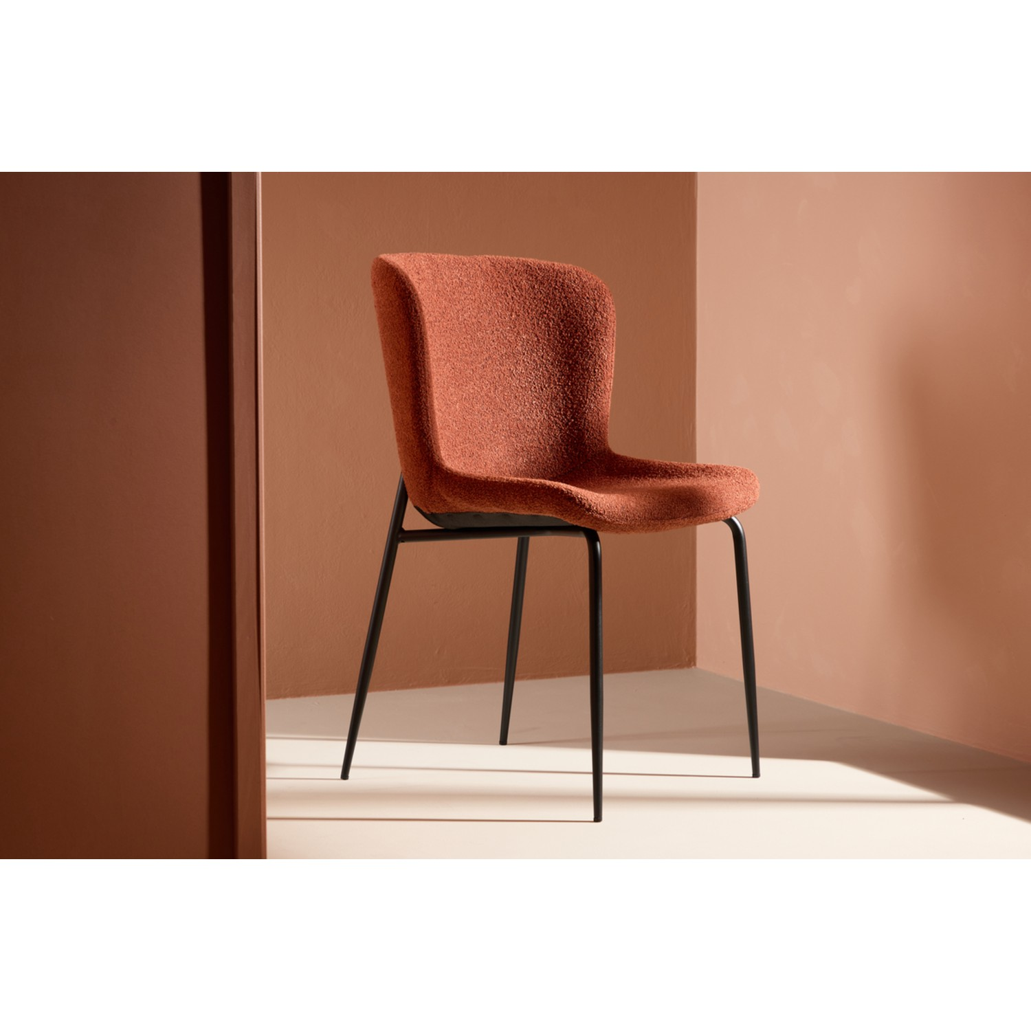 Înfrumusețează-ți sufrageria cu scaunul de dining tapițat cărămiziu/negru Modesto, un model metalic tapițat ce îmbină armonios rezistența și eleganța. Cu un șezut confortabil, tapițat în materiale de calitate și cu un design modern, acest scaun adaugă un plus de stil și rafinament oricărui spațiu.