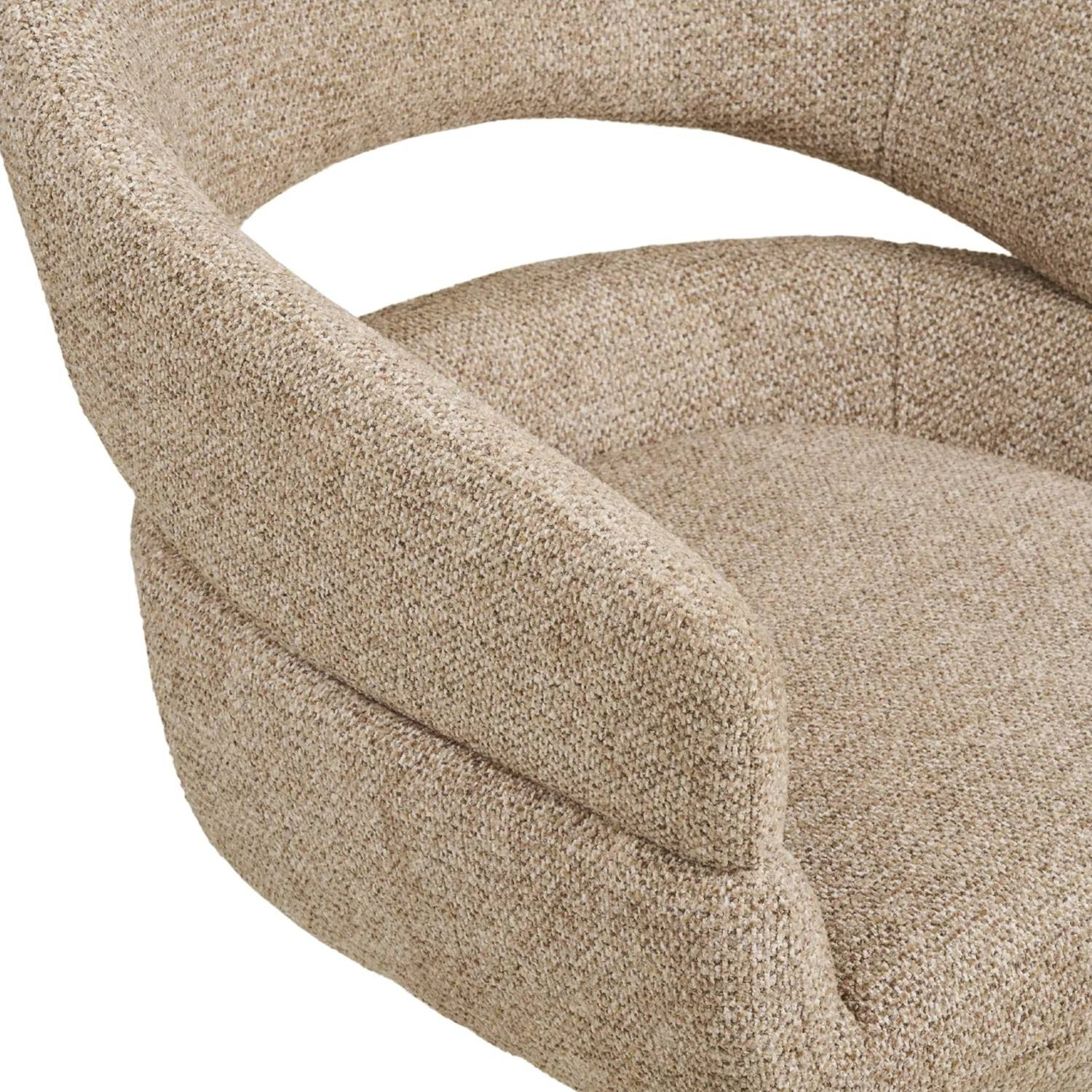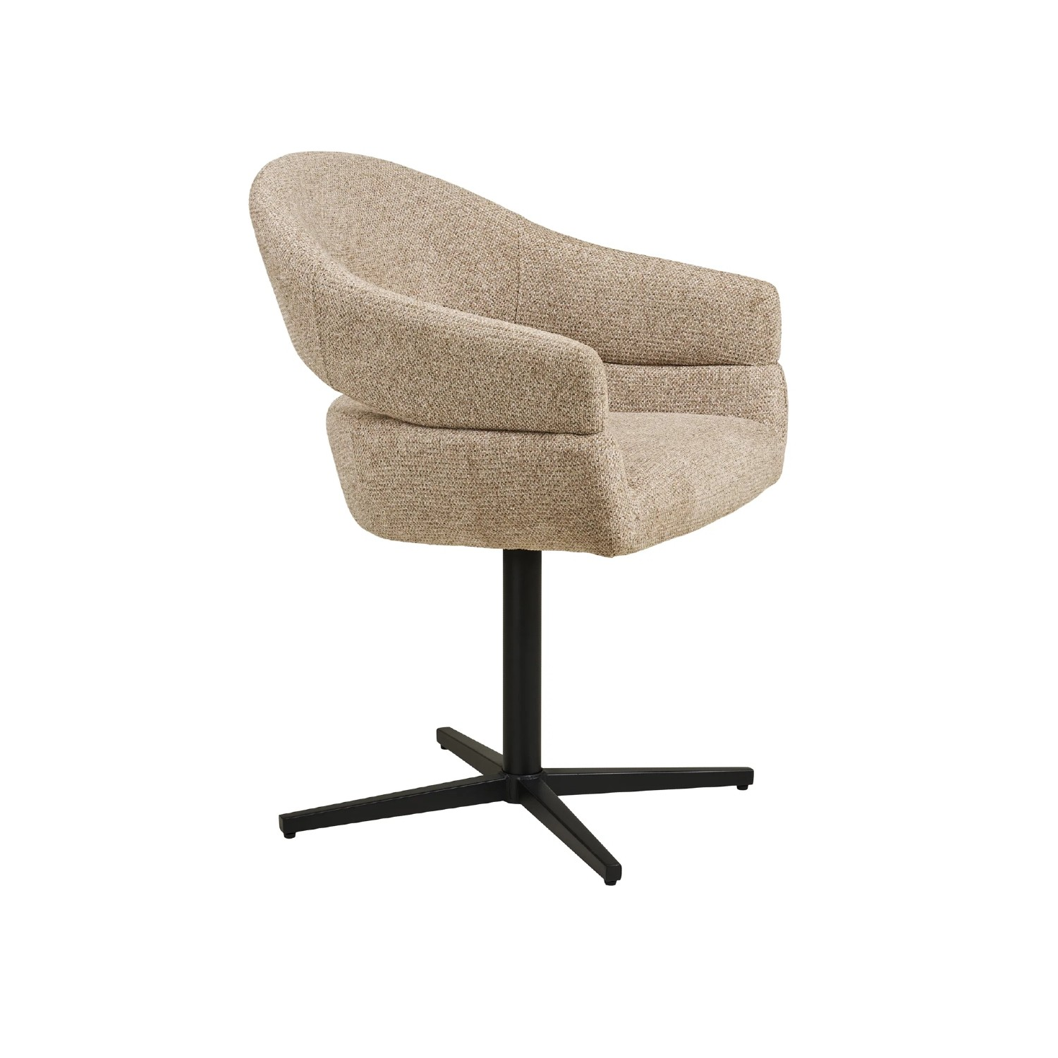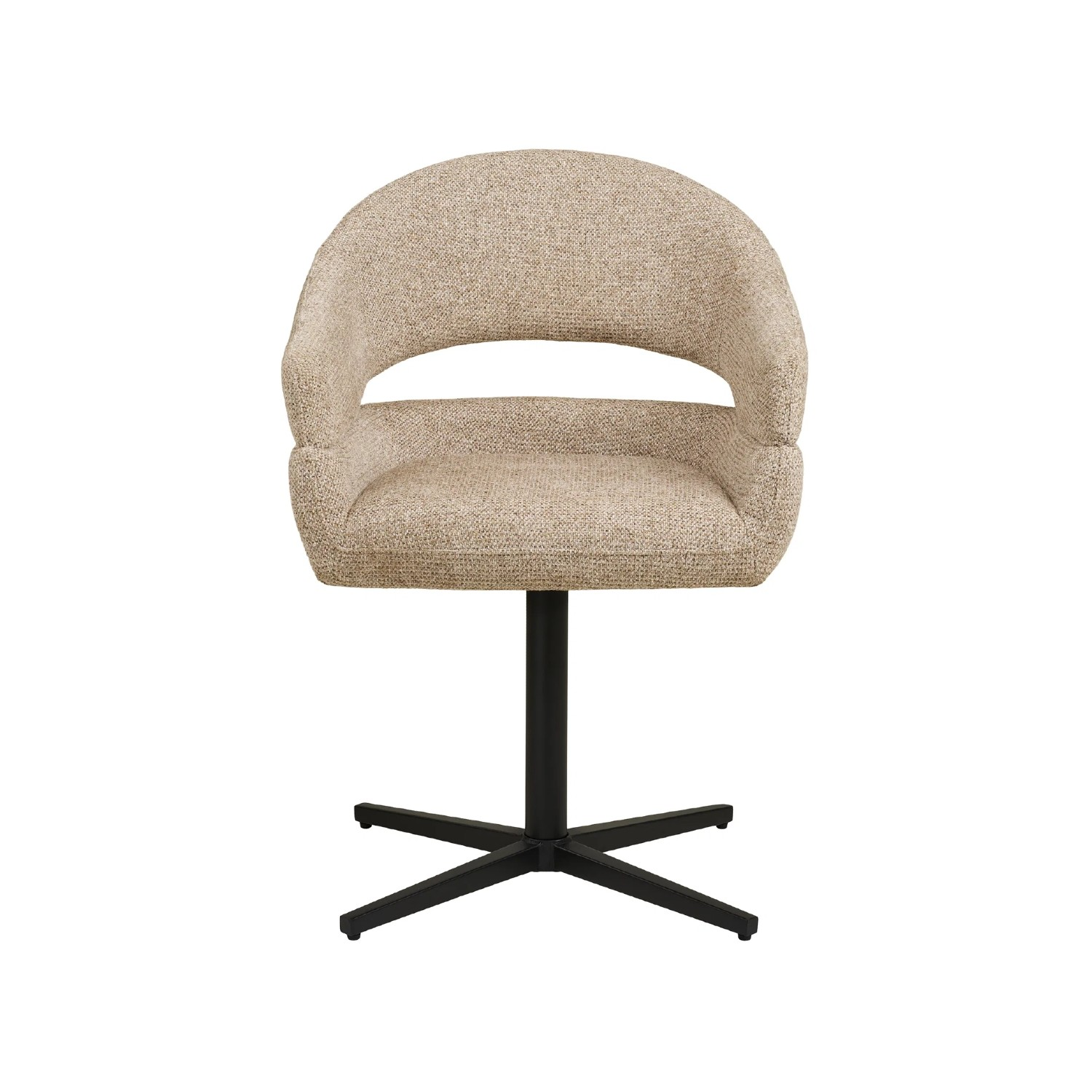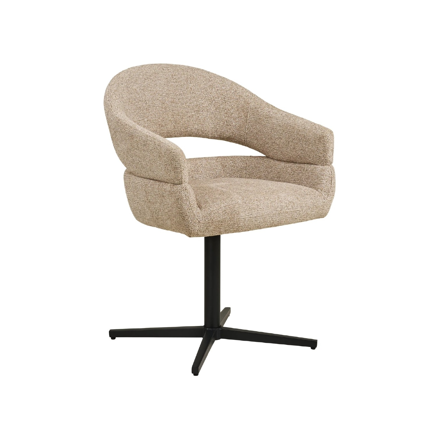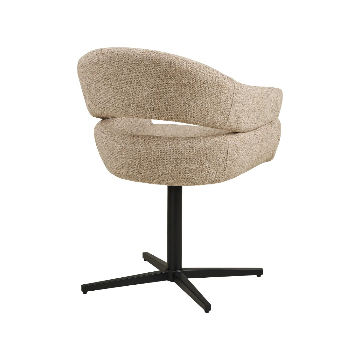 Transformă-ți spațiul de locuit sau biroul într-un colț sofisticat cu scaunul tapițat cu brațe rotativ bej/negru Dover care combină stilul contemporan cu confortul modern. Conceput pentru a impresiona atât prin aspect, cât și prin funcționalitate, acest scaun devine rapid elementul central al oricărui decor. Structura solidă și picioarele metalice cu finisaj de culoare cașmir conferă scaunului tapițat cu brațe rotativ bej/negru Dover stabilitate, durabilitate și o notă distinctă de rafinament. Brațele integrate oferă suport și eleganță, făcând din scaunul tapițat cu brațe rotativ bej/negru Dover o alegere inspirată pentru zone de dining, birouri, sau spații de relaxare. Tapițat cu material textil boucle bej de calitate, scaunul tapițat cu brațe rotativ bej/negru Dover este plăcut la atingere și rezistent la uzură. Textura delicată și nuanța caldă conferă un aer sofisticat și relaxant, ușor de asortat cu o varietate de palete cromatice și stiluri interioare – de la modern și minimalist, până la scandinav sau elegant-contemporan. Funcția de rotire la 180° adaugă un plus de mobilitate și versatilitate, făcând scaunul tapițat cu brațe rotativ bej/negru Dover nu doar confortabil, ci și extrem de practic. Spătarul ergonomic și șezutul moale, umplute cu spumă de tapițerie, oferă susținere optimă și un confort de durată, ideal chiar și pentru șederi îndelungate la birou sau la masă.