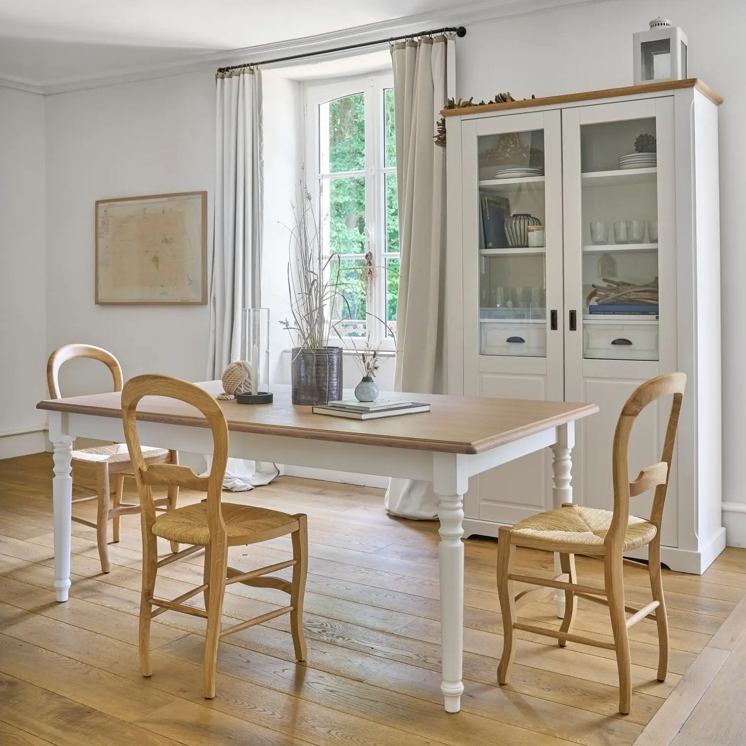Iti doresti o sufragerie cu interior luminos si plin de prospetime? Vitrina cu 2 usi si 2 sertare alb/stejar natur Provence este ceea ce cauti. Aceasta vitrina face parte din colectia de dining cu acelasi nume, care impresioneaza prin design, culoare, finisaje si materiale de calitate din care este executata. Combinatia dintre alb si finisajul natur al lemnului de stejar creeaza luminozitate in incapere si imprima o atmosfera calda care aminteste de zilele insorite de vacanta.